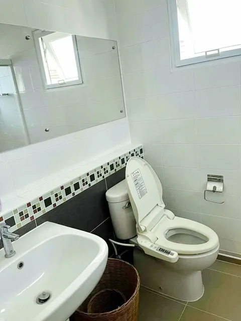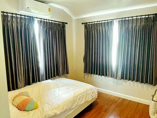 บ้านเดี่ยว 2 ชั้น ฟังก์ชัน 3 ห้องนอน 3 ห้องน้ำ จอดรถได้ 4 คัน ตกแต่งครบทุกห้อง แอร์ เฟอร์นิเจอร์ และเครื่องใช้ไฟฟ้าครบทั้งหลัง พร้อมเคเบิลทีวี ไมโครเวฟ ตู้เย็น และอินเทอร์เน็ต WiFi