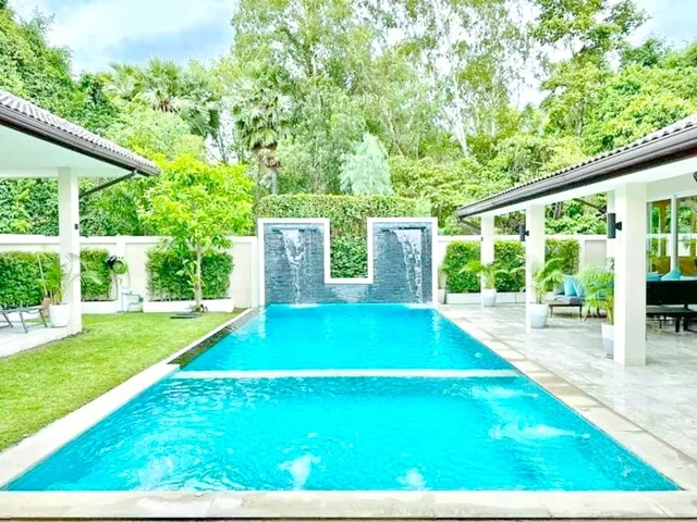 For Rent Pool Villa luxurious modern detached house 6bed 7bath near HuaiYai market 900m. 215 sq.wa. 600 sq.m. 149,999 B-M. large living area private pool villa quiet private atmosphere ideal for residence or premium vacation home prime Huai Yai location near Bang Saray beach 2 km. convenient access to community