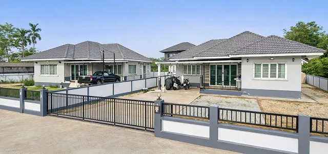 บ้านเดี่ยวชั้นเดียว พื้นที่กว้าง เนื้อที่ 98 ตารางวา บรรยากาศร่มรื่น มีสนามหญ้ารอบบ้าน เหมาะสำหรับการอยู่อาศัยแบบครอบครัว ต้องการความเป็นส่วนตัว และพื้นที่ใช้สอยภายนอกบ้าน