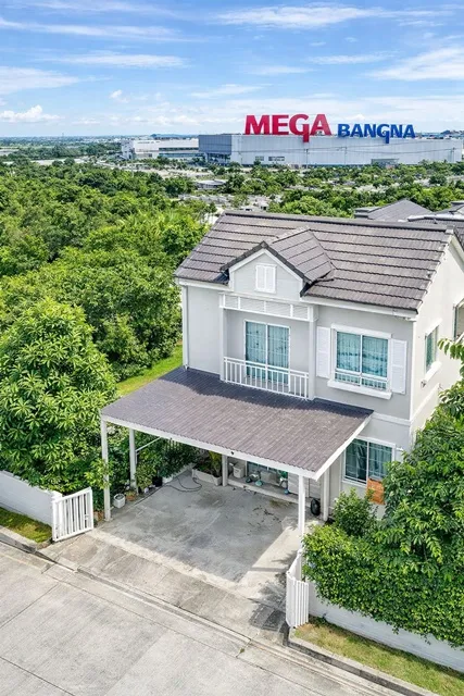 Two story detached house in Modern Colonial style featuring 3 bed 2 bath Located 1 km. from Mega Bangna and IKEA Bangna 32.5 sq.wa. 134 sq.m. Price 22,999 B-M. 2.2 km. from Thai Chinese International School Prime location suitable for residence or home office Convenient access to Bangna Trat Road Km. 10
