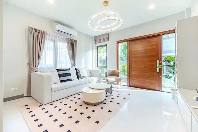 Mega Bangna 500m. Large house The City Bangna a new project. Luxurious 2story modern detached house with 4bed 5bath62 sq.wa. 285 sq.m. 99,999 THB 800 m. from Concordian International School Prime location on the main road near the expressway and ring road Ideal for premium living near Bang Kaeo Market Suan Luang Rama IX Park and Bang Na Trat Road.