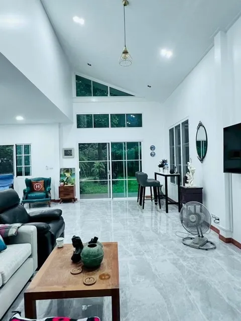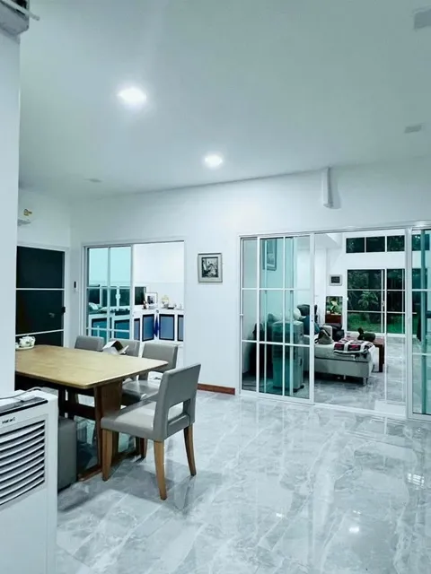Nikhom Gateway intersection Wat Kutchi 100 m. for rent luxurious single-story house large house 101sq.wa. 301sq.m. quiet atmosphere shady 2bed 3bath 17,998B-M. fully furnished electrical appliances convenient parking suitable for a retirement home One Night Gateway Market 2.1 km. Phanom Sarakham - Paet Riu