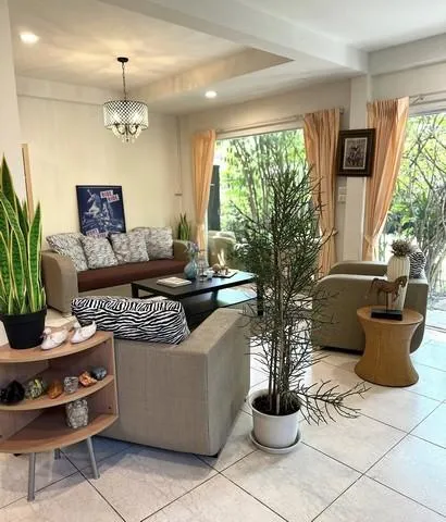 มีห้องแม่บ้าน+ห้องน้ำ แยกต่างหาก แอร์ 4 ห้อง มีห้องนั่งเล่น สวนสวยสไตล์ Tropical ล้อมรอบบ้าน