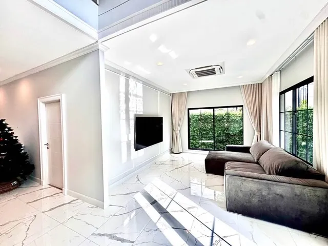 A premium 2-storey detached house in brand-new condition. Located on King Kaew Main Road, this private corner unit offers maximum privacy with no facing neighbors. Conveniently situated near the clubhouse, swimming pool, and fitness center.