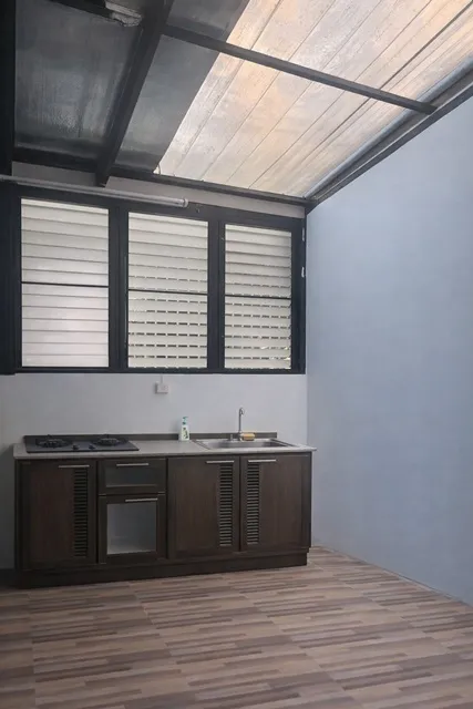 - พื้นปูกระเบื้องแกรนิตโต้ชั้นล่าง ปูลามเนตชั้นบน