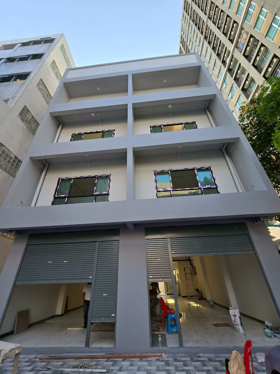 อาคารพาณิชย์สร้างใหม่ 2 คูหา 4 ชั้น เนื้อที่ 125 ตรว. พื้นที่ใช้สอยตัวตึกประมาณ 645 ตารางเมตร มี 6 ห้องน้ำ