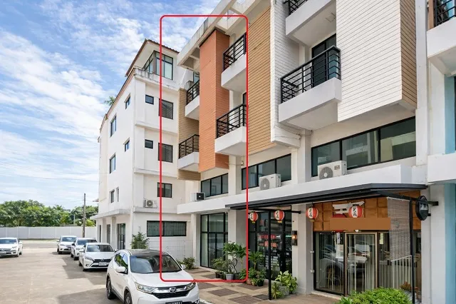 Fashion Island 900 m. For Rent 3.5-story commercial building with 2-3bed 3 bath End unit at the beginning of the soi prime location on Panya Indra Road 18 sq.wa. 220 sq.m. usable area 16,999 B-M Selling price 3.95 million B-M Newly renovated modern style Suitable for home office shop or residence High potential location with multiple access routes 1.0 km. from Safari World Khlong Sam Wa lifestyle hub