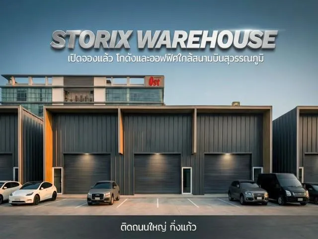 ให้เช่าโกดังสร้างใหม่มีออฟฟิศิ92-130ตร.มถนนกิ่งแก้วใกล้สนามบินสุวรรณภูมิ