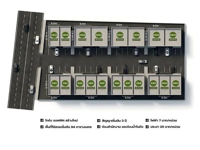 พื้นที่ใช้สอยเริ่มต้น 92 - 130 ตารางเมตร จำนวน 1 ห้องสำนักงาน 1 ห้องน้ำ