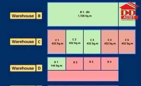 • D – 1,728 sq.m. (single-floor warehouse)