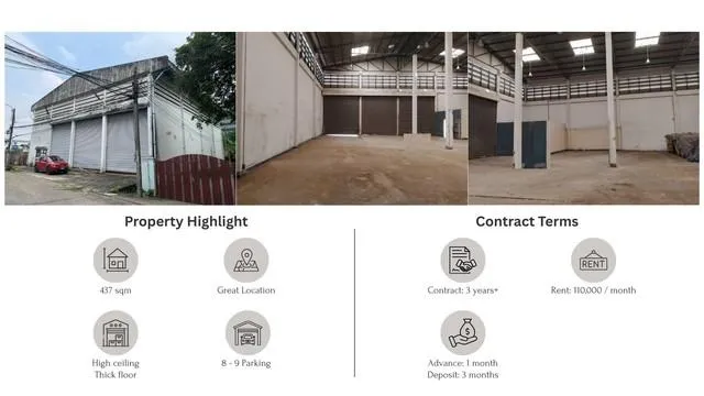 ให้เช่าโกดัง ย่านแจ้งวัฒนะ หลักสี่ ใกล้ MRT ศูนย์ราชการ และ MRT แจ้งวัฒนะ 14 ผังเมืองสีแดง เหมาะสำหรับยิม ฟิตเนส โชว์รูมสินค้า ร้านอาหารขนาดใหญ่ ราคาเช่า 110,000 บาท / เดือน ( สัญญาครั้งละ 3 ปี ล่วงหน้า 1 เดือน ประกัน 3 เดือน ) ที่ตั้ง ถนนแจ้งวัฒนะ ซอยแจ้งวัฒนะ เขตหลักสี่ แขวงทุ่งสองห้อง กรุงเทพมหานคร 10210 ติดต่อ : คุณภัสพงณ์ 0634098164 Line : binkem22 https://www.facebook.com/profile.php?id=61581484955548 เนื้อที่ 151 ตารางวา จำนวน 1 ชั้น จอดรถ 8-9 คัน ( จอดข้างหน้า ) - พื้นที่อาคาร 437 ตร.ม. - หลังคาสูง 10 ม. ( ทำชั้นลอยเพิ่มได้ ) - เพดานสูง เหมาะสำหรับธุรกิจที่ต้องการพื้นที่โปร่งหรือเพิ่มชั้นลอย - พื้นหนา รับน้ำหนักได้สูง แข็งแรงเหมาะสำหรับการใช้งานเชิงพาณิชย์ สถานที่ใกล้เคียง - ศูนย์ราชการ มีคนเข้าออกหลายหมื่นต่อวัน - ใกล้ทางด่วนศรีรัช และโทลล์เวย์ - ใกล้ MRT ศูนย์ราชการ (600 ม.) - ใกล้ MRT แจ้งวัฒนะ 14 (500 ม.) เหมาะสำหรับทำธรกิจ - ยิม ฟิตเนส หรือสตูดิโอออกกำลังกาย - โชว์รูมสินค้า - ร้านอาหารขนาดใหญ่ - การใช้ประโยชน์อื่นๆ ที่ต้องการเพดานสูง หรือพื้นหนารับน้ำหนักได้สูง ราคาเช่า 110,000 บาท / เดือน ( สัญญาครั้งละ 3 ปี ล่วงหน้า 1 เดือน ประกัน 3 เดือน ) ที่ตั้ง ถนนแจ้งวัฒนะ ซอยแจ้งวัฒนะ เขตหลักสี่ แขวงทุ่งสองห้อง กรุงเทพมหานคร 10210 ติดต่อ : คุณภัสพงณ์ 0634098164 Line : binkem22 https://www.facebook.com/profile.php?id=61581484955548 PL. Real Estate Broker http://www.kaibaanteedin.com บริการรับฝากขาย คอนโด บ้าน ที่ดิน อสังหาริมทรัพย์ทุกชนิด